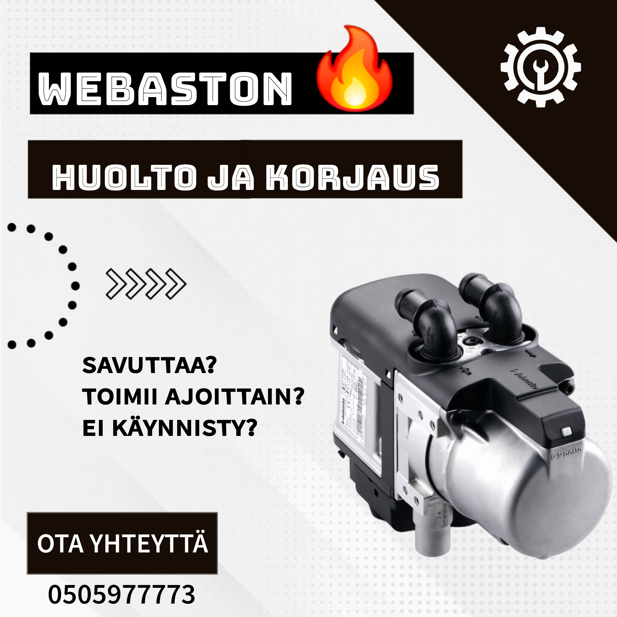 Autojen lisälämmittimien (Webasto, Eberspächer) vikaantuminen on hyvin yleinen ongelma ja yleinen käsitys on, ettei niitä kustannussyistä kannata korjata. Olemme kehittäneet menetelmiä joiden avulla kustannukset on saatu minimoitua ja ammattitaidon kehityttyä lämmittimien korjaus todellakin kannattaa myös asiakkaalle. Väite, että noin 10 vuotta vanha lämmitin kannattaa ennemmin uusia kuin huoltaa tai korjata ei pidä paikkansa. Uusi lämmitin maksaa töineen tuhansia euroja, kun taas korjauskustannukset liikkuvat yleensä 300€ – 700€ välissä.