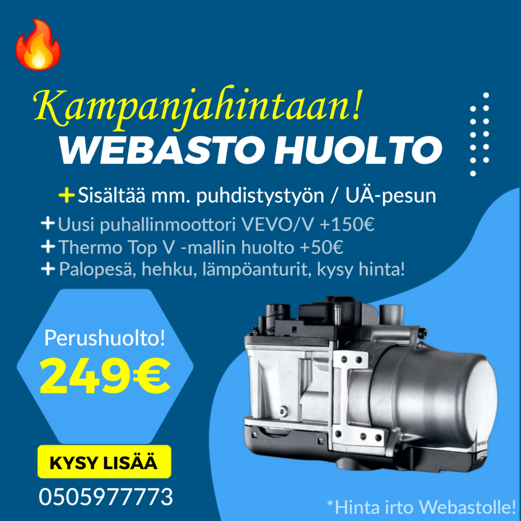 Oletus siitä, että Webastoa ei tarvitse huoltaa ennen kuin se menee vikatilaan on siis väärä. Perushuolto antaa lisää aikaa arvokkaille osille, kuten palopesä, puhallinmoottori ja piirikortti.